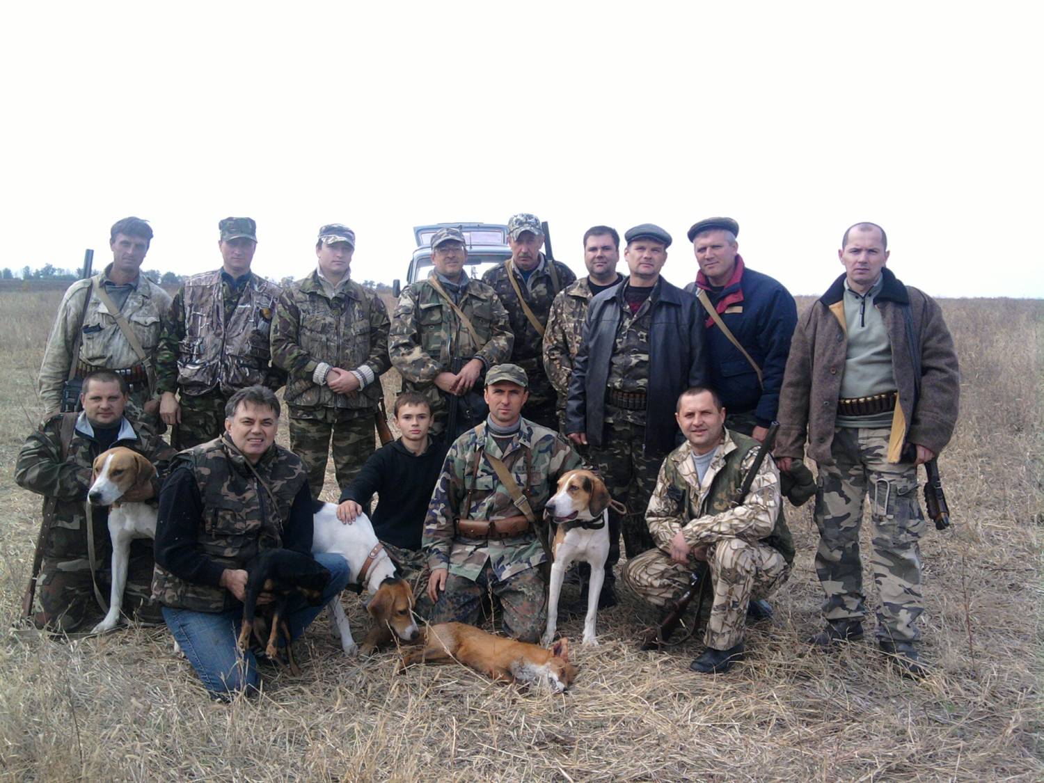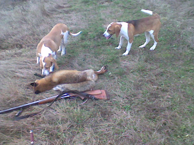 | У нас на зайца открытие 14 ноября. На лису уже выезжали дважды. Но что то не особо удачно. Наверное лиса ещё находится в полях. Прошли кучу камыша, а в позапрошлое воскресенье убили толко одного лисовина, но красивого. На последних выходных собрались коллективом. Пошли сначала по камышу. Еле еле нашли оду лису. Потом решили пошти лесок гектаров на 30. Буквально сразу собаки погнали зайца. После двух кругов по леску заец увёл собак в поля. В итоге по степени подготовки собаки начали возвращаться назад уставшими. Я своих искал полтора часа. Благо пастух их видел. Ребята тем времене поехали по камышам дальше охотиться. Собаки в камыше подняли енотов. Один шумовой выскочил, его взяли. Второй водил собак минут сорок. На средину гона и мои успели. В итоге енота задавили, а шкуру крепко попортили. После этого напустили собак в нормальный массив камыша. Собаки подняли класного лисовина. Наверное старого. По нём отстрелялось 4 человека. В итоге просрали. В конце концов собаки попадали, и больше гнать не хотели. Сказалосль отсутствие физической формы.